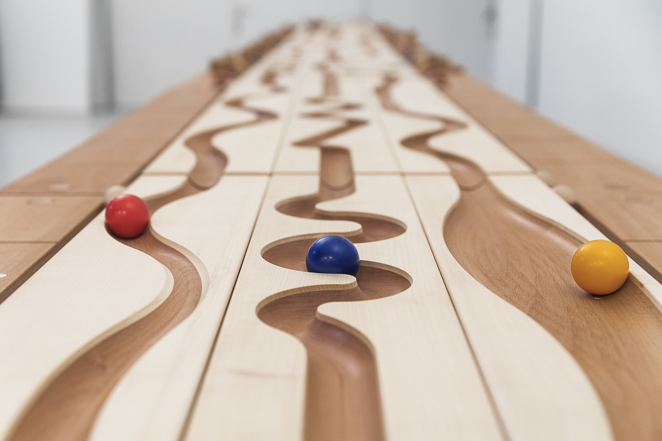 Mehrere Kugeln rollen gleichzeitig – Teams tippen auf richtige Kugel oder die gesamte Reihenfolge. Jede Runde ist kurz, spannend und sorgt sofort für Diskussionen: „Was tippen wir?“ – „Trauen wir uns?“ – „Okay, wir gehen All-In!“